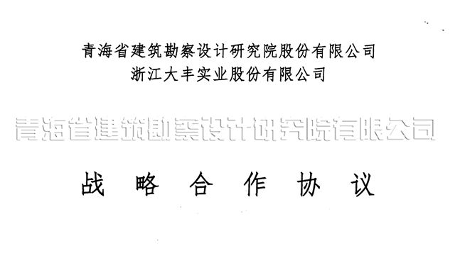 11月18日,受青海省院董事長、總經(jīng)理王力明的委托,我院授權(quán)代表、黨委書記沈波立與浙江大豐實業(yè)股份有限公司授權(quán)代表、經(jīng)理孫濤簽署了戰(zhàn)略合作協(xié)議。
