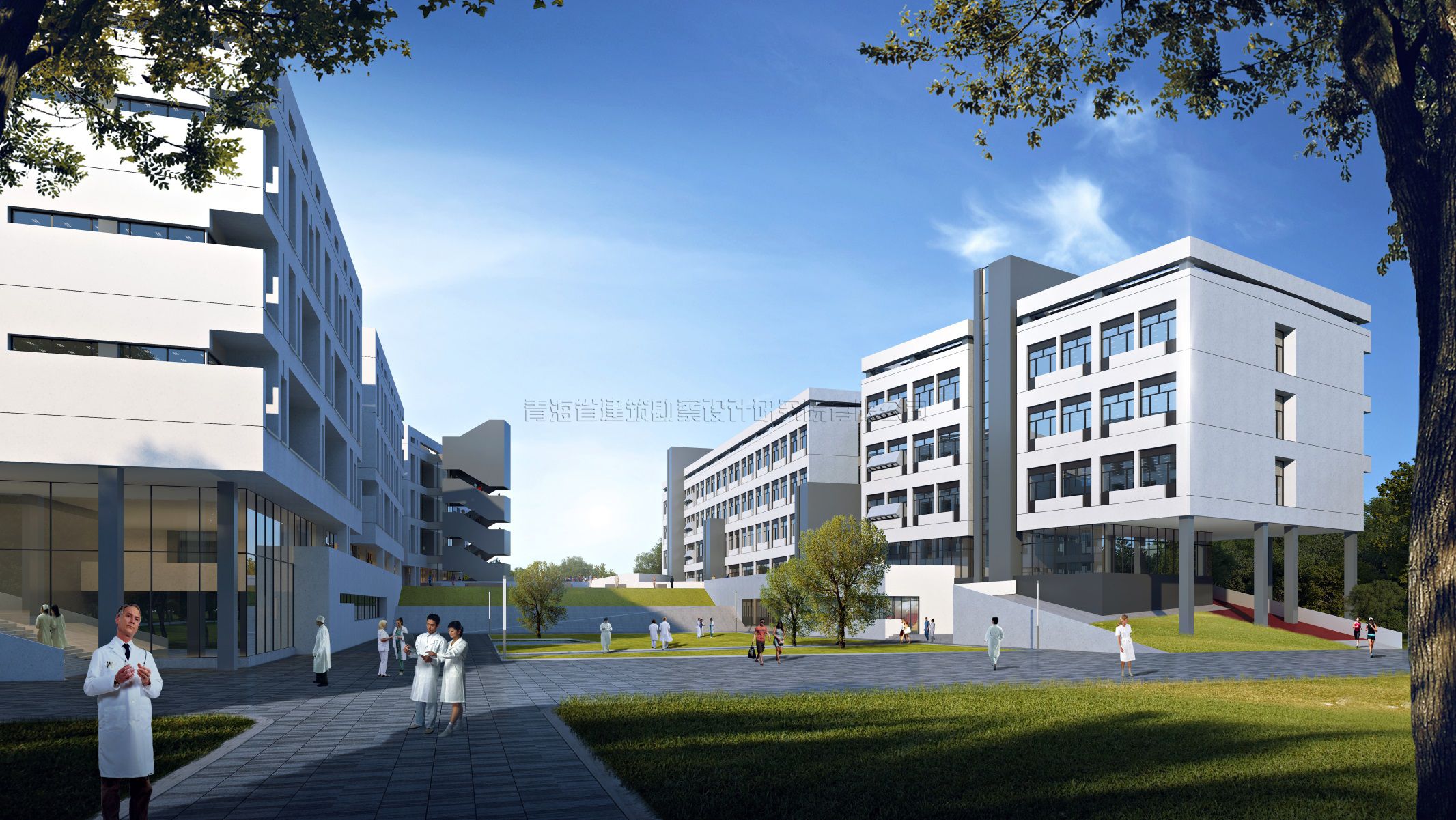 青海大學(xué)醫(yī)學(xué)院公共衛(wèi)生健康研究與臨床技能實訓(xùn)基地建設(shè)項目,地點位于西寧市城北區(qū)青海大學(xué)校園內(nèi)西南部。南向毗鄰城市干道泓學(xué)大街:總建筑面積29978.01平方米,其中地上29012.85平方米,地下965.16平方米。建筑物呈不規(guī)則狀,層數(shù)地上5層,地下1層;建筑高度23.95米,建筑首層為門廳、展廳、會議。公共活動空間、學(xué)術(shù)展廊、多媒體報告廳、多功能廳、中醫(yī)醫(yī)史館等公共交流空間;二層至五層分為兩大功能分區(qū),其中北樓為實驗室及其輔助支持空間,南樓為辦公室,教研室、實訓(xùn)室、智慧教室等辦公教學(xué)空間。